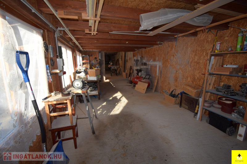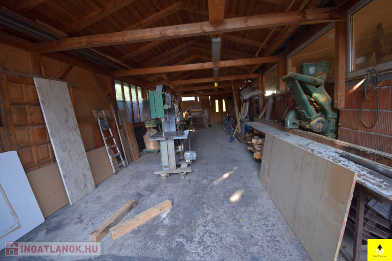 A telken található egy 94 m²-es, korábban asztalos műhelyként működő épület, amely: