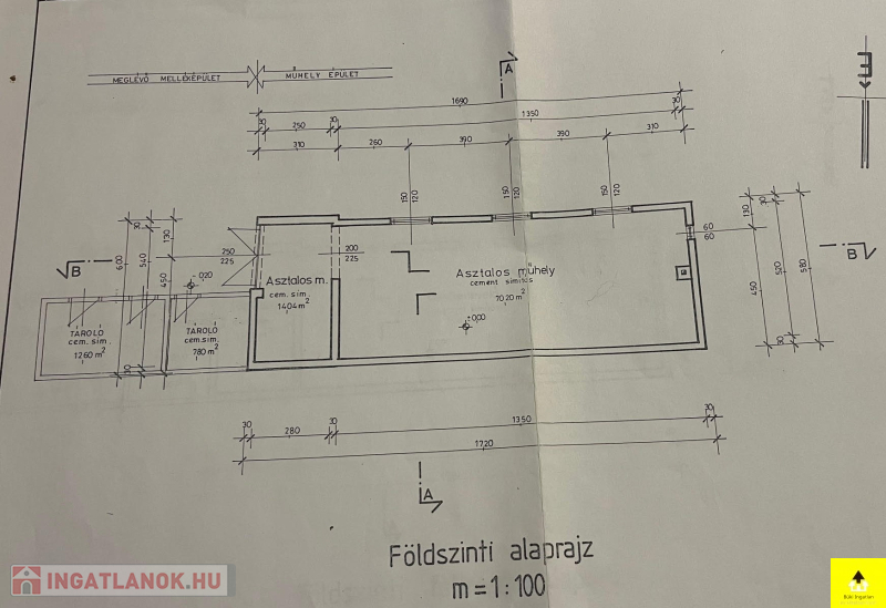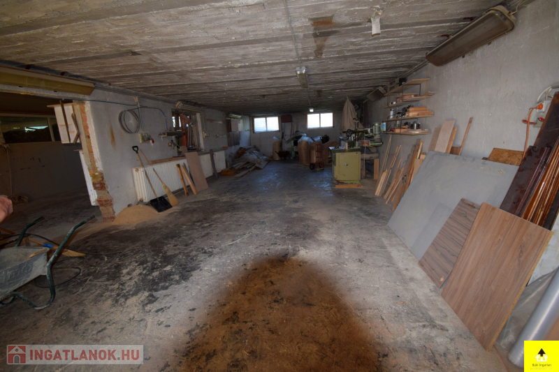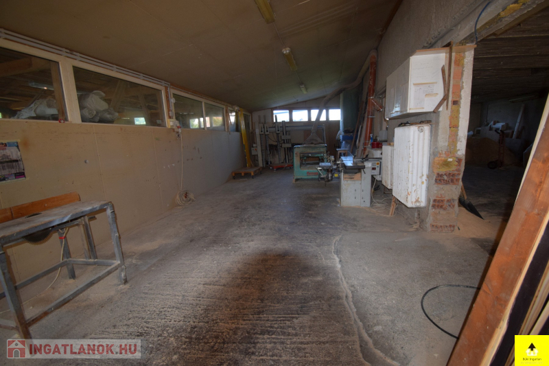A telken található egy 94 m²-es, korábban asztalos műhelyként működő épület, amely: