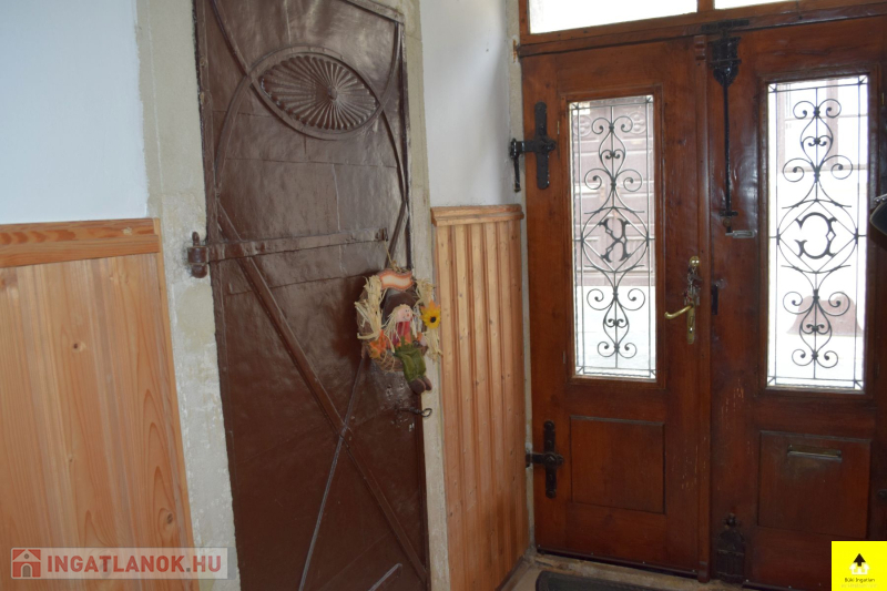 A főbejárati folyosó 13 m2. Innen közelíthető meg a felső szint, ahol a 70 m2 lakás található és szintén innen lehet lemenni az ingatlan szép állapotú és egyedi hangulatú 141 m2-es pincéjébe.