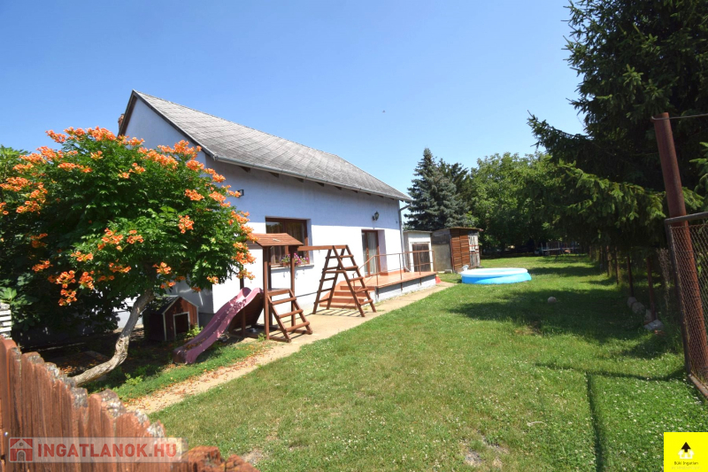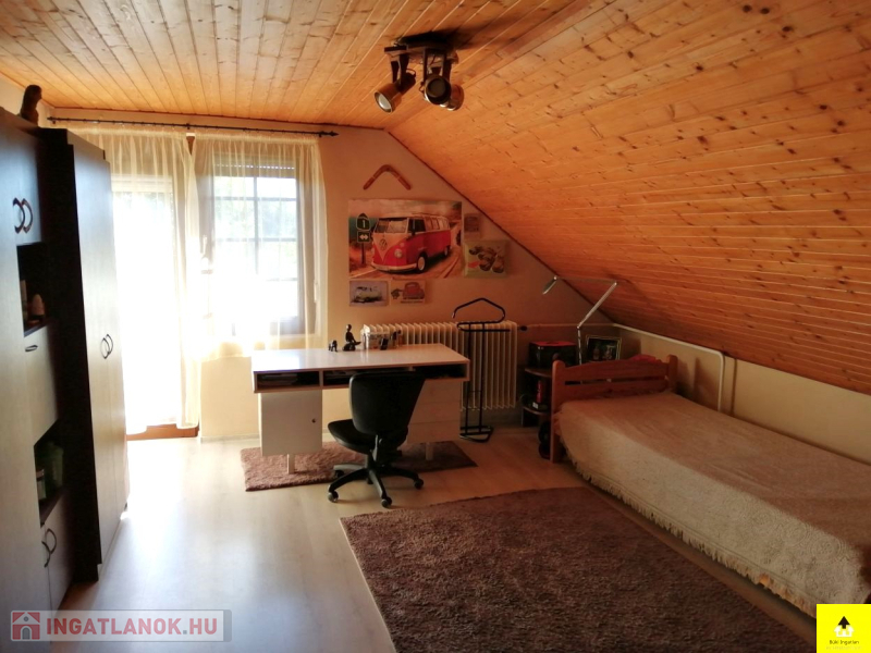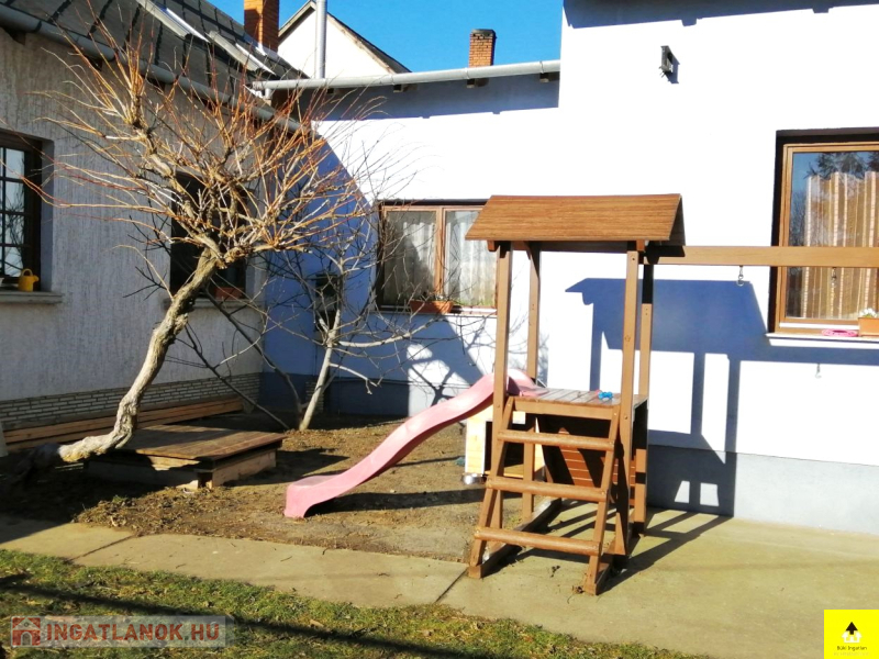 Az utcafronti házhoz kapcsolódik a másik 60 m2-es épület. A házban egy 28 m2-es szoba, egy konyha, egy étkező, egy fürdőszoba, egy wc található. Ez a ház tovább bővíthető a tetőtér beépítésével.