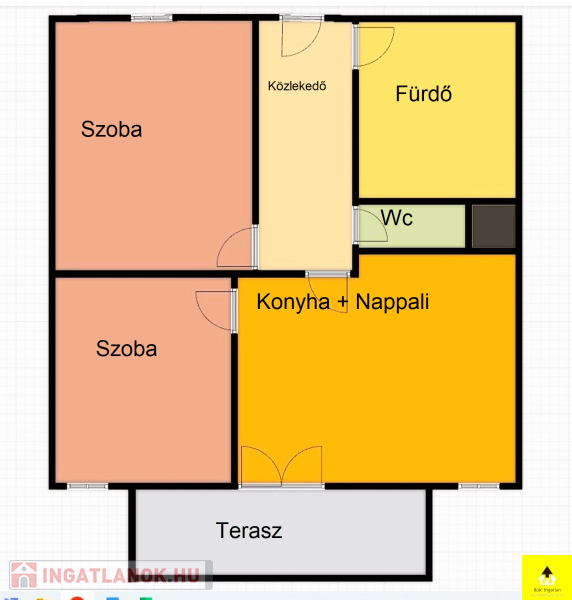 A lakás praktikus és kényelmes elrendezésű, minden helyisége jól használható: