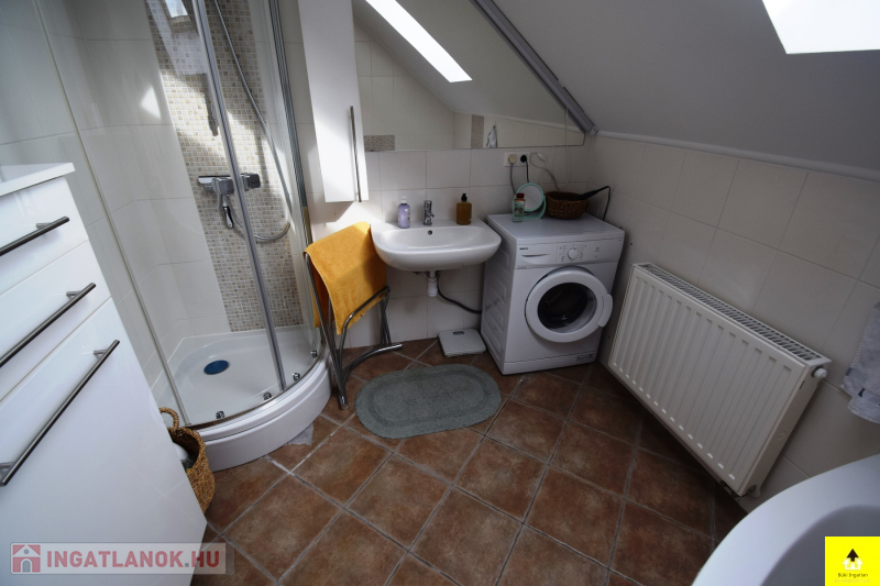 Bükfürdőn csendes környezetben kínáljuk eladásra ezt a kiváló állapotú napfényes tágas lakást! Bruttó alapterülete 76 m2, a terasz 17,4 m2. Található benne 1 előtér, 1 nappali, 3 hálószoba, 1 konyha, 1 fürdőszoba, 1 wc, és a fedett hatalmas erkély. A lakáshoz tartozik továbbá felette lévő padlásrész, amely járható felületű, így tárolónak is kiválóm, valamint a telek hátsó részén lévő kb. 50 m2-es kizárólagos használatú telekrész is. A fűtését és melegvízellátását korszerű gázkazán biztosítja és tekintve, hogy a ház még 20 éves sincs, így már korszerű anyagokból épült, természetesen már homlokzatszigetelést is kapott, így rendkívül alacsony rezsivel fenntartható. Az ingatlanra a garantált 3%-os Otthon Start Hitel is igénybe vehető. Kifizetést követően azonnal beköltözhető!