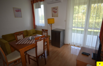 Bükfürdő – Birdland Villapark 46,5 m² + 12 m² terasz • földszinti, kertkapcsolatos lakás eladó! Bükfürdő egyik legkedveltebb, exkluzív üdülő- és lakóövezetében, a Birdland Villaparkban kínálunk eladásra egy 46,5 m² alapterületű, 12 m² terasszal rendelkező, kiváló állapotú, földszinti lakást. A lakáshoz saját, kizárólagos használatú telekrész és saját parkolóhely is tartozik. A Villapark a híres Greenfield Golf & Spa Hotel közvetlen szomszédságában helyezkedik el, parkosított, csendes, természetközeli környezetben. A lakástulajdonosok kedvezményeket kapnak a szálloda szolgáltatásaiból, ami tovább növeli az itt élés és pihenés értékét. A lakás elrendezése és felszereltsége A lakás praktikus és kényelmes elrendezésű, minden helyisége jól használható: • amerikai konyhás nappali • két külön nyíló hálószoba • fürdőszoba • külön WC • előszoba / közlekedő • 12 m²-es terasz közvetlen kertkapcsolattal • saját felszíni parkolóhely A fűtést és hűtést modern, hűtő-fűtő klímák biztosítják, amelyek akár wifi-n keresztül is vezérelhetők, így távolról is irányítható a hőmérséklet. Birdland Villapark – exkluzív környezet A Villapark Nyugat-Magyarország egyik legvonzóbb üdülő-helyszíne, ahol: • gondozott, ligetes, zöld környezet fogadja a lakókat • közvetlenül a 18 lyukú golfpálya mellett helyezkedik el • pár perc sétára található a régió kiemelkedő wellness-központja, a Greenfield Hotel Golf & Spa • tulajdonosként kedvezményesen használhatók a szálloda wellness-, spa- és sport szolgáltatásai Ez a környezet nemcsak életminőségben ad kiemelkedőt, hanem erős turisztikai vonzerőt is biztosít — így az ingatlan állandó lakhatásra, nyaralónak és befektetésnek egyaránt ideális. Befektetőknek: kiemelkedő hozamlehetőség A térségben rendkívül magas a kereslet: • turisztikai célú kiadásra Bükfürdő gyógyvize és egész éves vendégforgalma miatt • hosszú távú bérbeadásra Ausztria közelsége miatt (10 perc autóval) Az ingatlan könnyen kiadható, gyorsan bútorozható és minimális rezsivel fenntartható — ideális passzív jövedelem forrás. Lakhatásra és nyaralásra is kiváló A lakás nyugodt környezete, kényelmes elrendezése és kertkapcsolata miatt: • pároknak • kis családoknak • idősebbeknek • második otthont, nyaralót keresőknek egyaránt remek választás. Finanszírozás A lakás lakóingatlanként van nyilvántartva, így az Otthon Start Program garantált 3% kamatozású hitele is igényelhető rá.